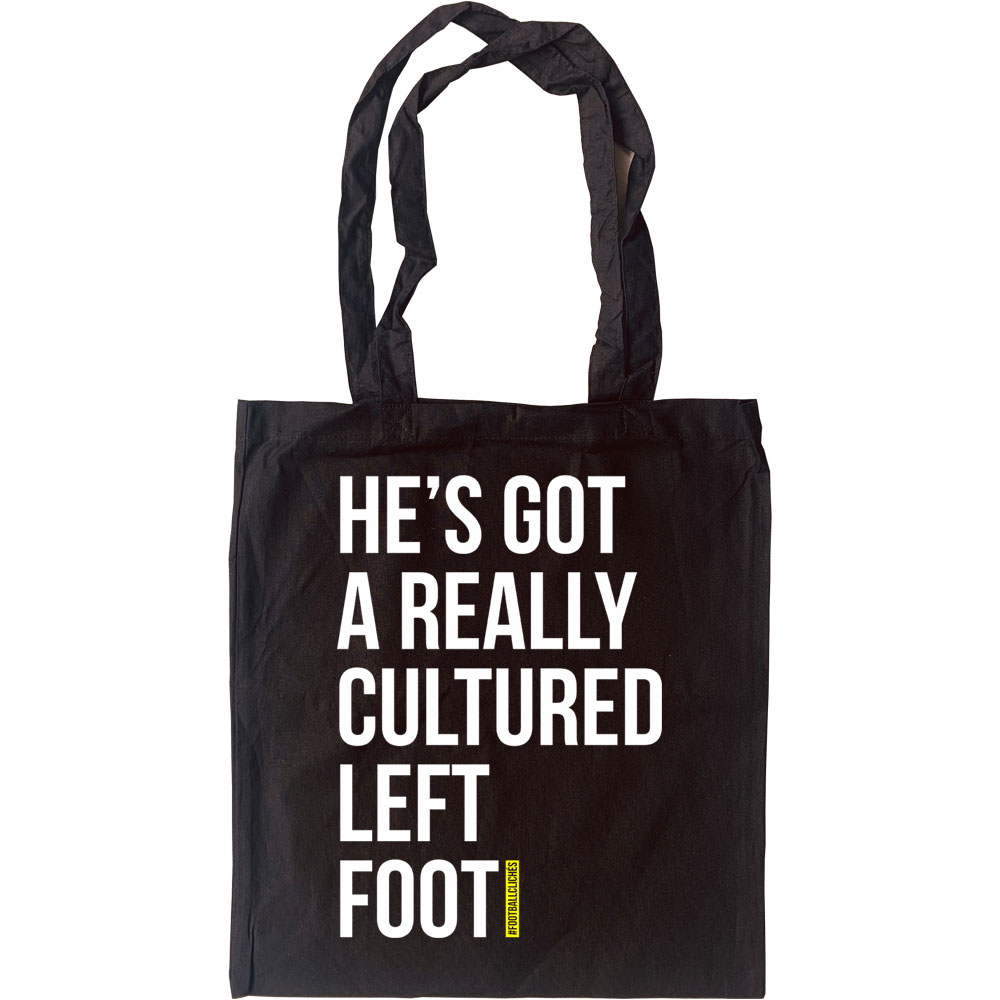"Now, Brian, you'll see this lad's got a really cultured left foot...". Little known fact: only left feet can be cultured; but what exactly is a "cultured" foot anyway? Does it read Homer? Play the violin? Or just have the ability to kick a ball straight? Part of our #footballcliches range. Our design is printed on a 100% cotton, eco-friendly tote bag.