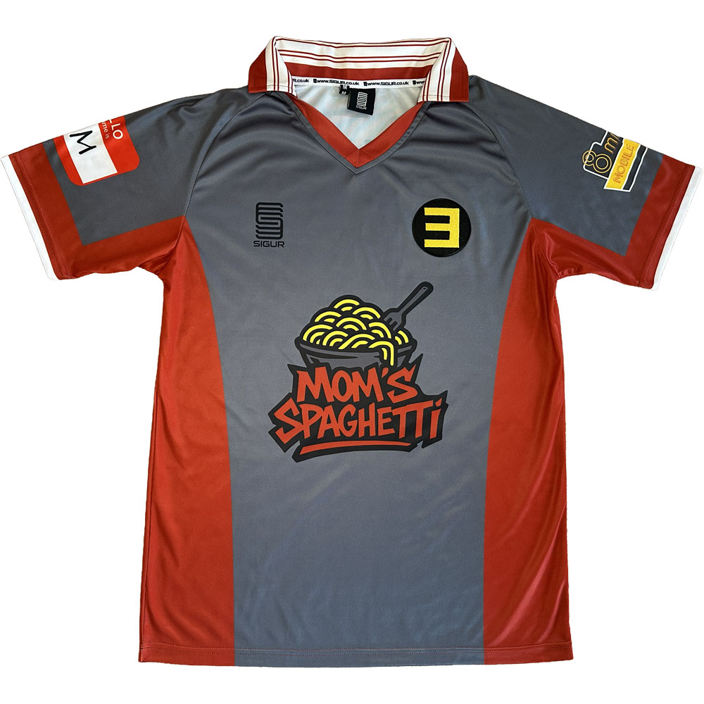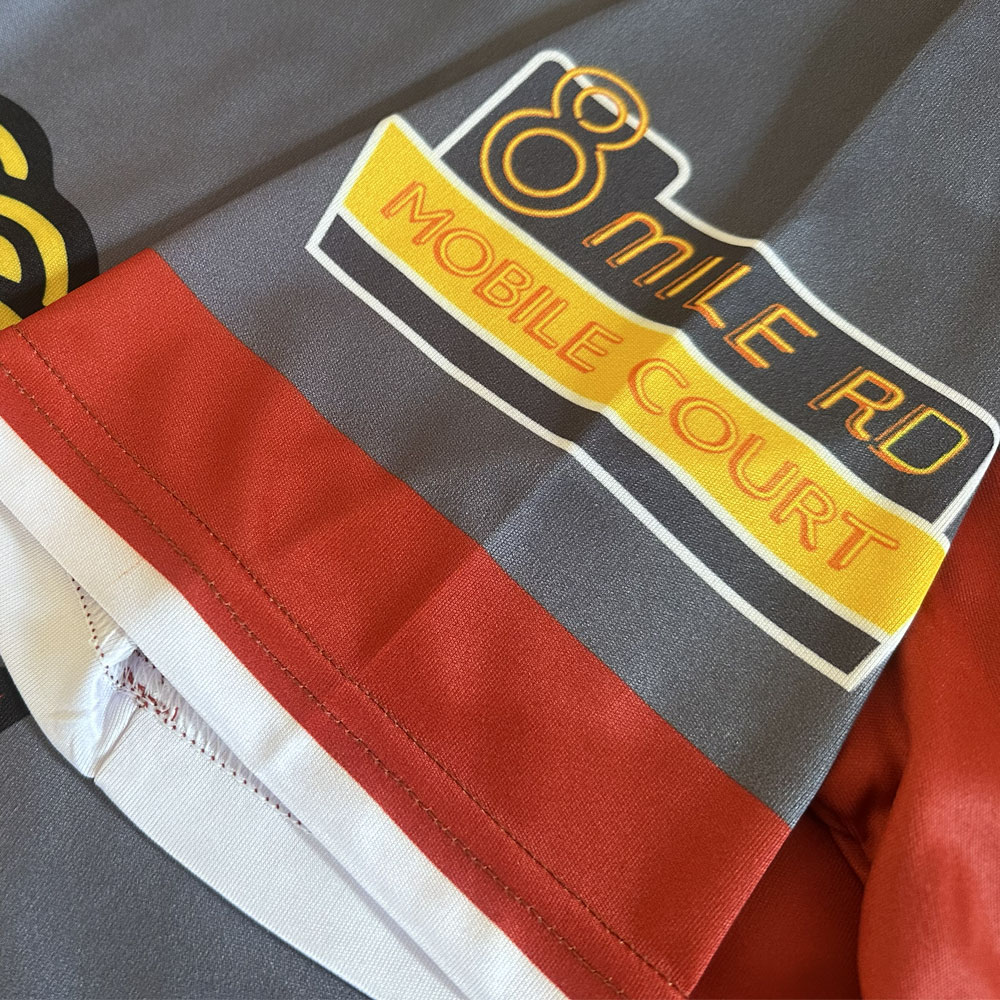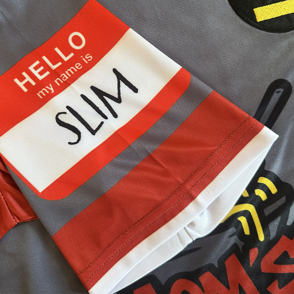 Our Eminem-inspired shirt is based on the short-sleeved jacket worn in the music video for "Without Me". Rather than create a team badge, we decided the badge Mathers' sports as Rap Boy in the same music video was perfect as-is.