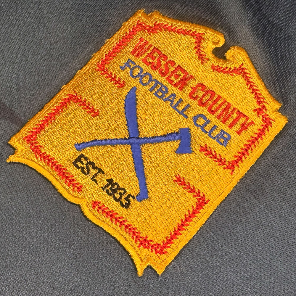 A football shirt inspired by the cult 1980 slasher horror film "Firday the 13th". The embroidered badge namechecks Wessex County where most of the films take place, and features the date 1935, the year that Camp Crystal Lake was first set-up. The shirt pattern is inspired by Jason's hockey mask; a small version of which appears on the rear of the shirt.