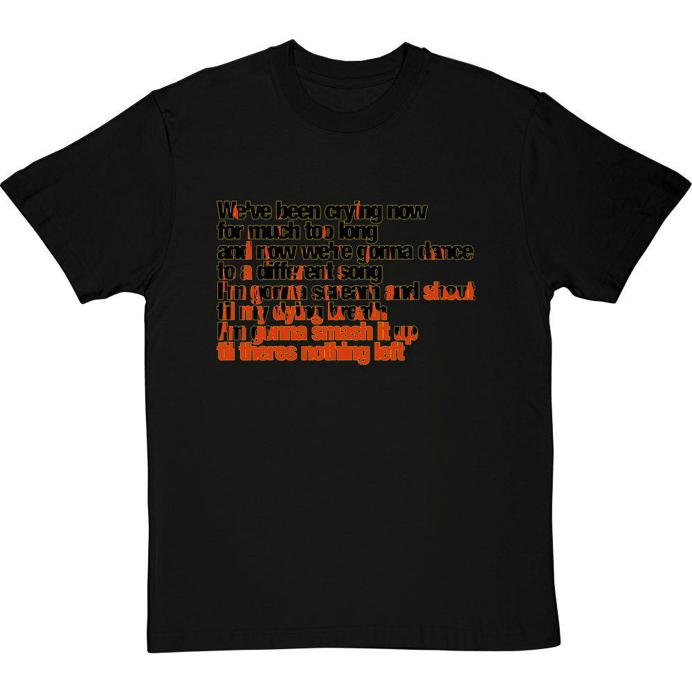 We've been crying now for much too long / And now we're gonna dance to a different song / I'm gonna scream and shout til my dying breath / I'm gonna smash it up til there's nothing left