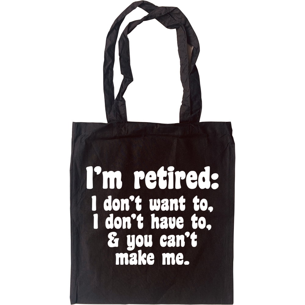 I'm Retired: I Don't Want To, I Don't Have To and You Can't Make Me Tote Bag