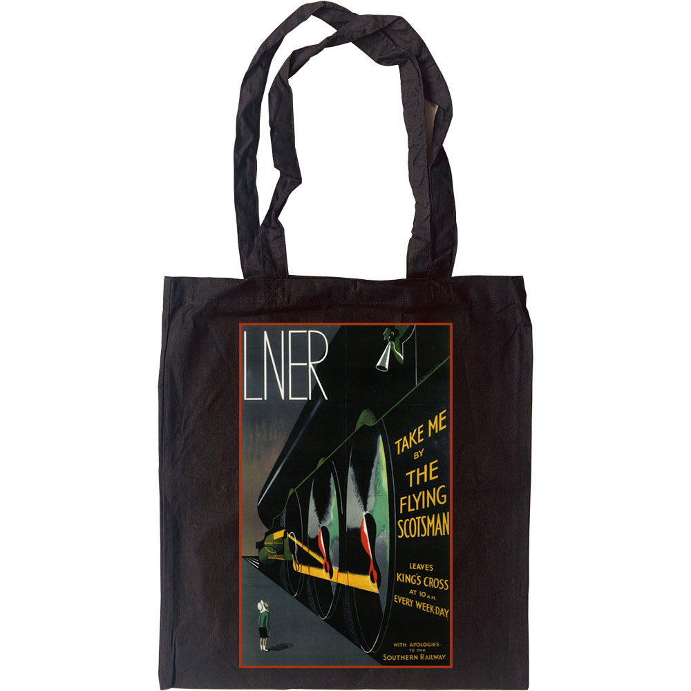 In 1932 the London and North Eastern Railway released the Take Me By The Flying Scotsman poster, a crafty parody of the earlier Southern Railway 'Little Boy' poster. Our design is printed on a 100% cotton, eco-friendly tote bag.