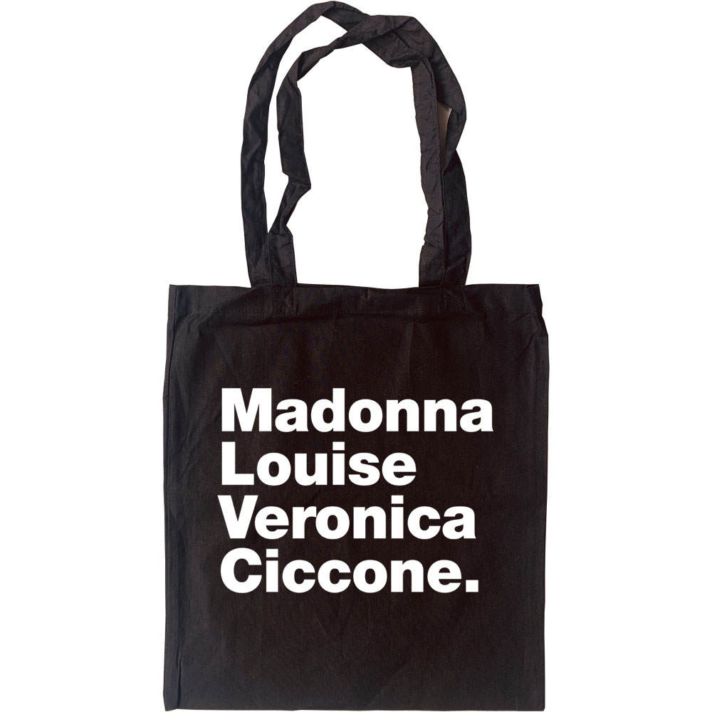 Madonna Louise Veronica Ciccone: the full name of pop legend Madonna Our design is printed on a 100% cotton, eco-friendly tote bag.