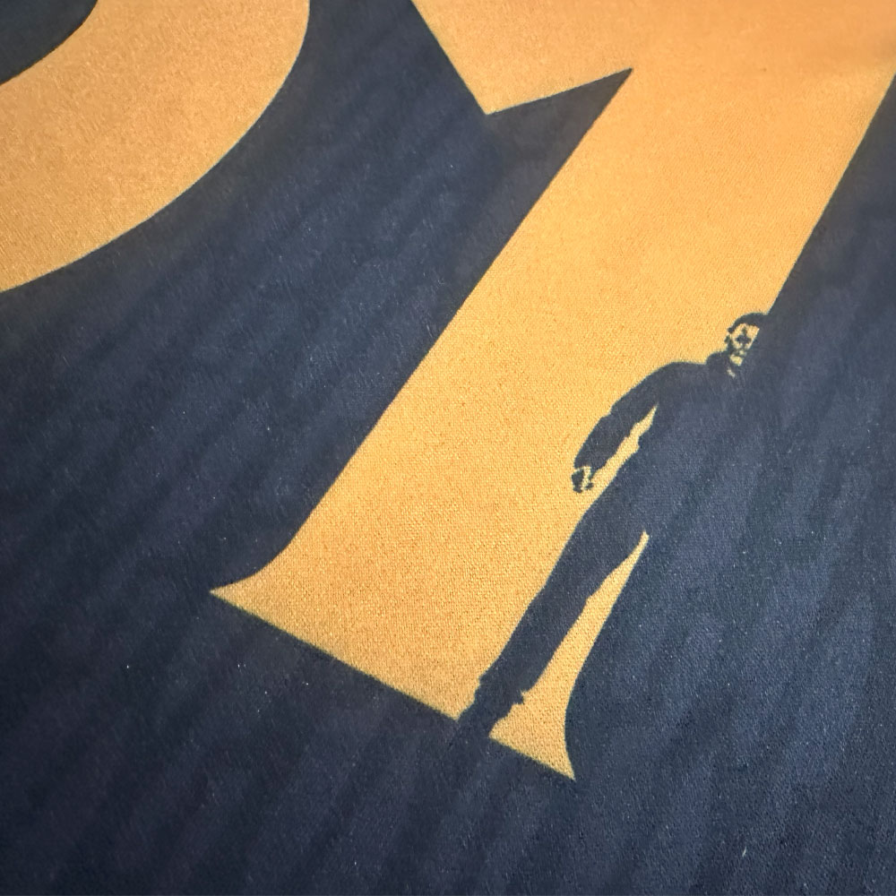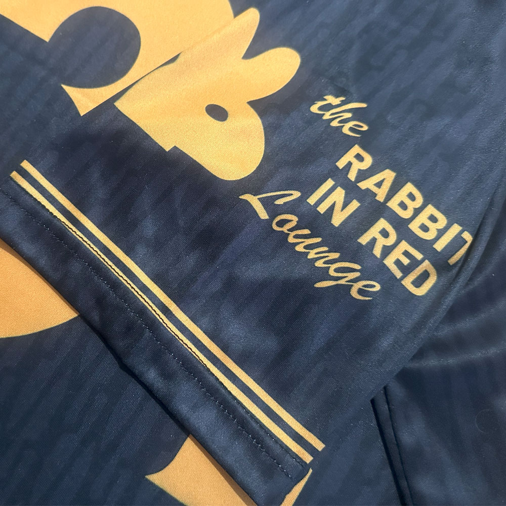 The main shirt sponsor is the logo of Strode Realty; the realty company owned by Laurie’s dad that is trying to sell the old Myers house. The sleeve sponsor is The Rabbit in Red Lounge, the lap dancing club where Michael’s mother worked. On the rear of the shirt is the name Myres (for Michael) and the number 31 (for 31 October - the date of Halloween). The number 1 on the rear also features an image of Michael hidden in the number.