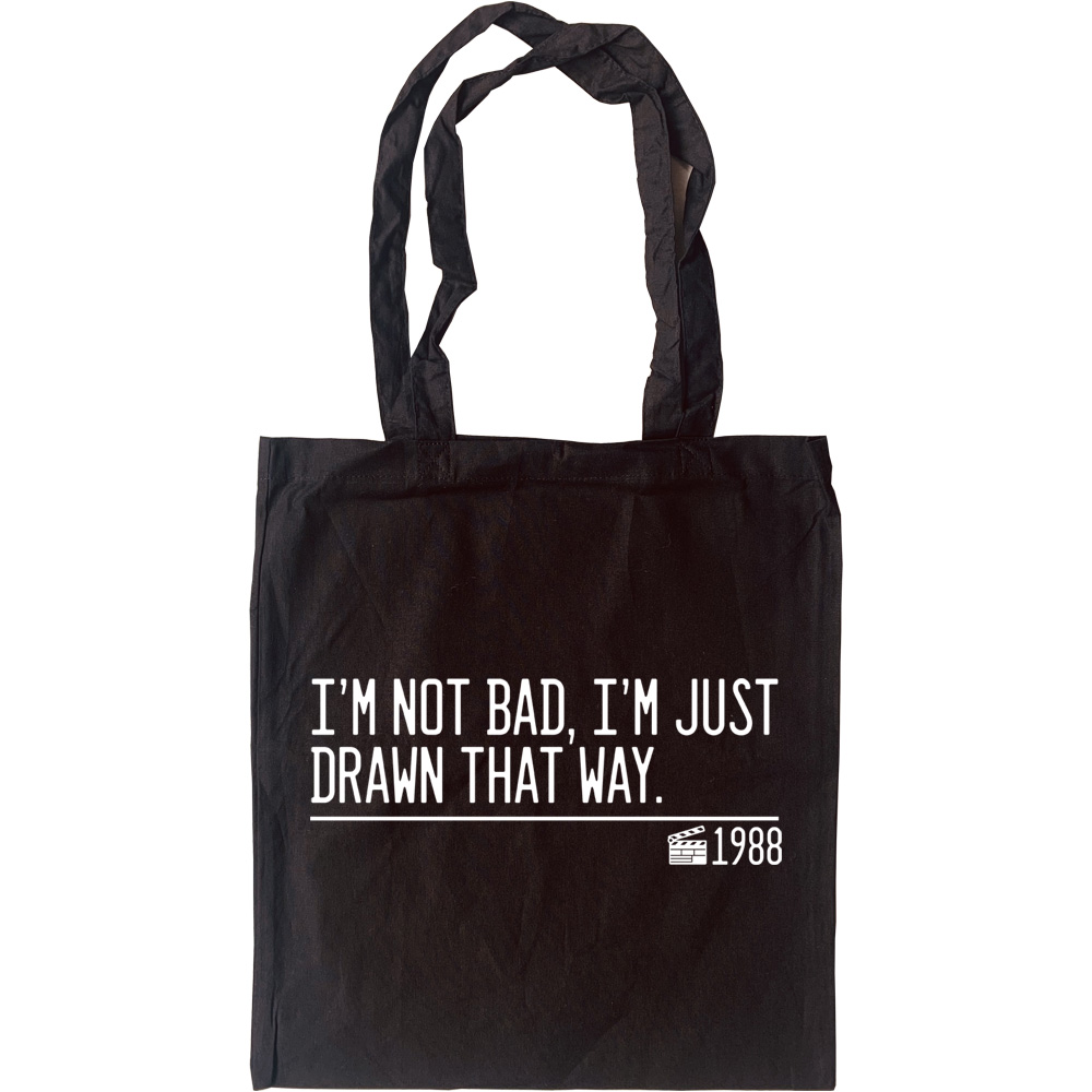 Spoken by the uncredited voice of Kathleen Turner as Jessica Rabbit in Who Framed Roger Rabbit (1988): "I'm not bad, I'm just drawn that way.". Printed on a 100% cotton, eco-friendly tote bag.