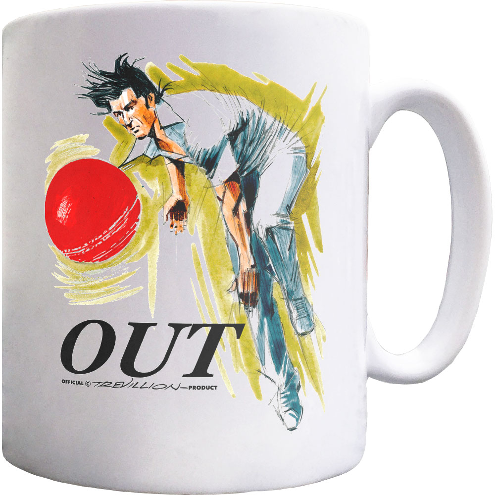 A ceramic mug featuring one of 300 cricket conundrums created by artist Paul Trevillion.