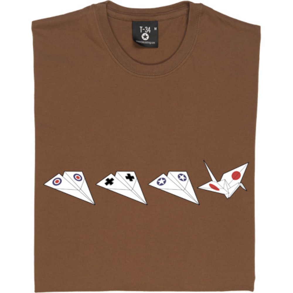 Four examples of military roundels affixed to paper planes typical of their countries. From left: Royal Air Force (British Armed Forces), Luftwaffe (Germany), United States Air Force, Japan Air Self-Defense Force.