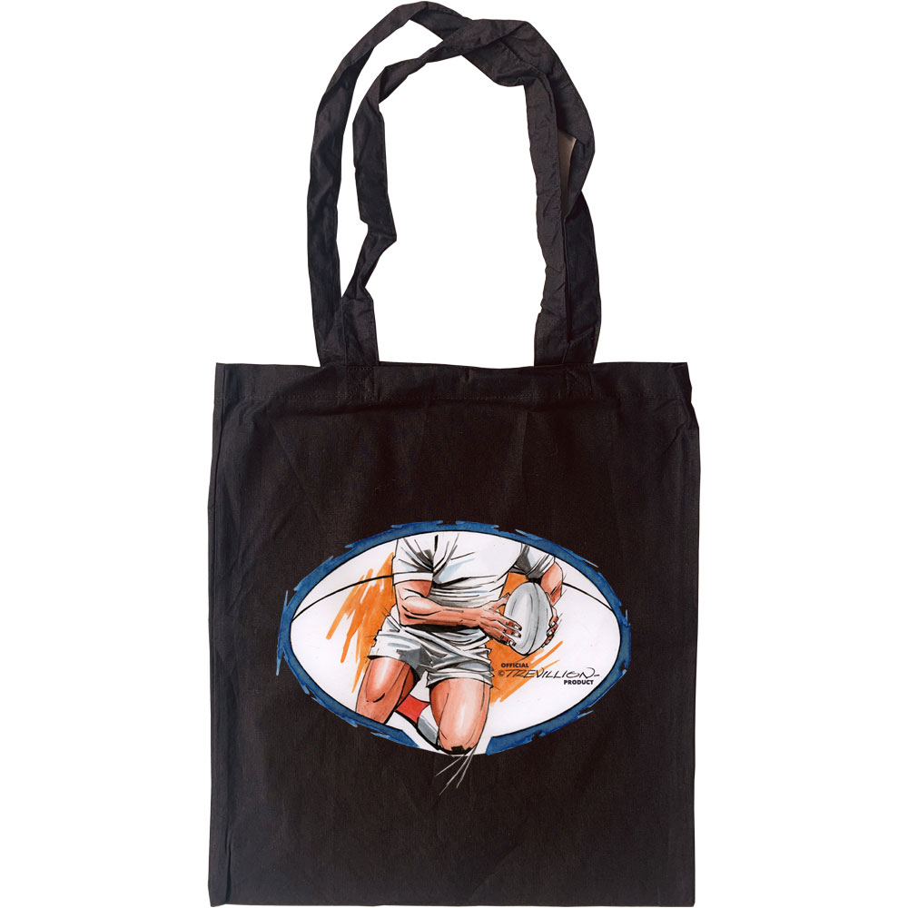 From a Trevillion original rugby player painting created in 2017, depicting the surging body of an unknown rugby player, running with the ball in his hands.  (In February 2018 this artwork appeared on the front cover of An Evening with Nigel Melville programme in aid of the Duke of Wellingtons Regiment Memorial Appeal, showing the rugby player wearing the Duke of Wellington Regiment badge on his white shirt.) Our design is printed on a 100% cotton, eco-friendly tote bag.