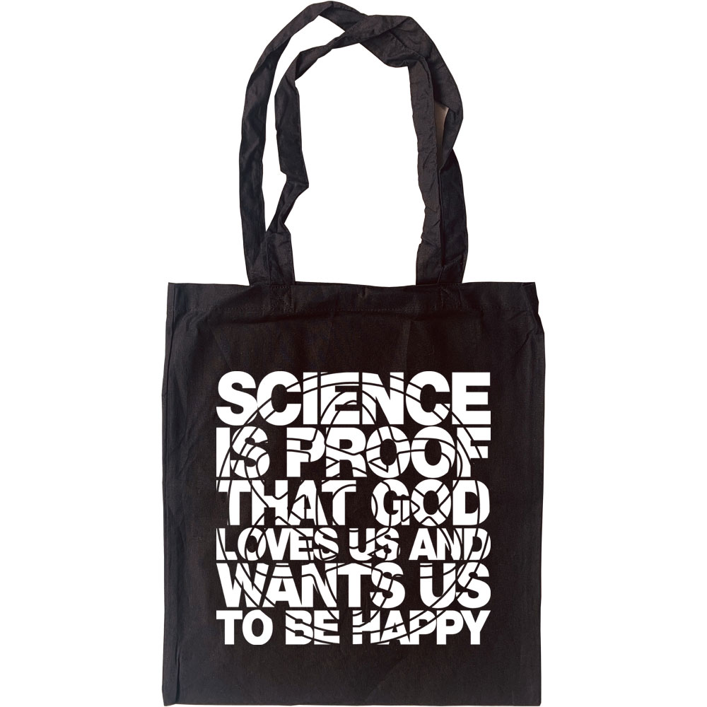 Science is proof that God loves us and wants us to be happy, to paraphrase Benjamin Franklin.  Our design is printed on a 100% cotton, eco-friendly tote bag.