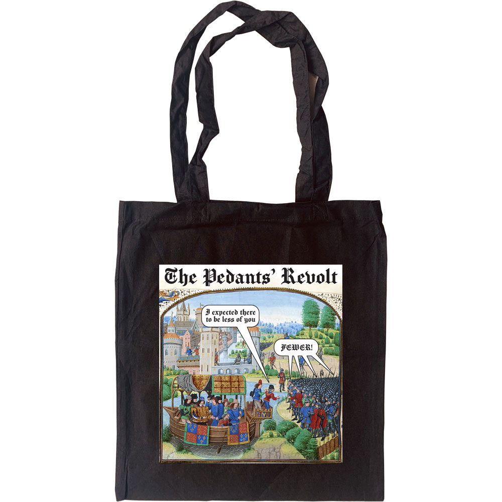 The lesser-known cousin of the fourteenth-century Peasants' Revolt. King Richard II is depicted here meeting with the rebels at which he exclaims "I expected there to be less of you", to which the reply comes: "Fewer!" Our design is printed on a 100% cotton, eco-friendly tote bag.