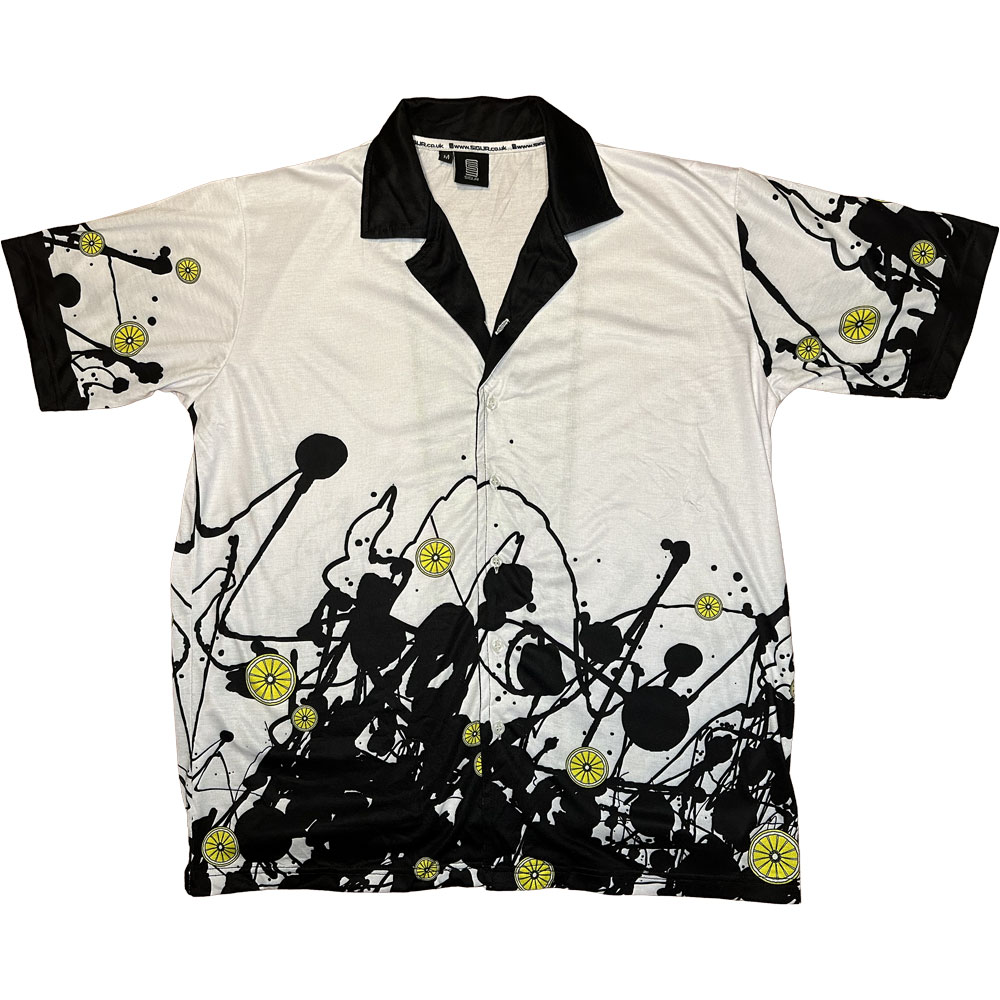 A button-up, revere-collared shirt loosely based on the single artwork for The Stone Roses' 1989 single "Made Of Stone". The shirt features a black and white "paint splatter" colour scheme, interspersed with John Squire's iconic lemon motifs, and contrasting black collar and cuffs.