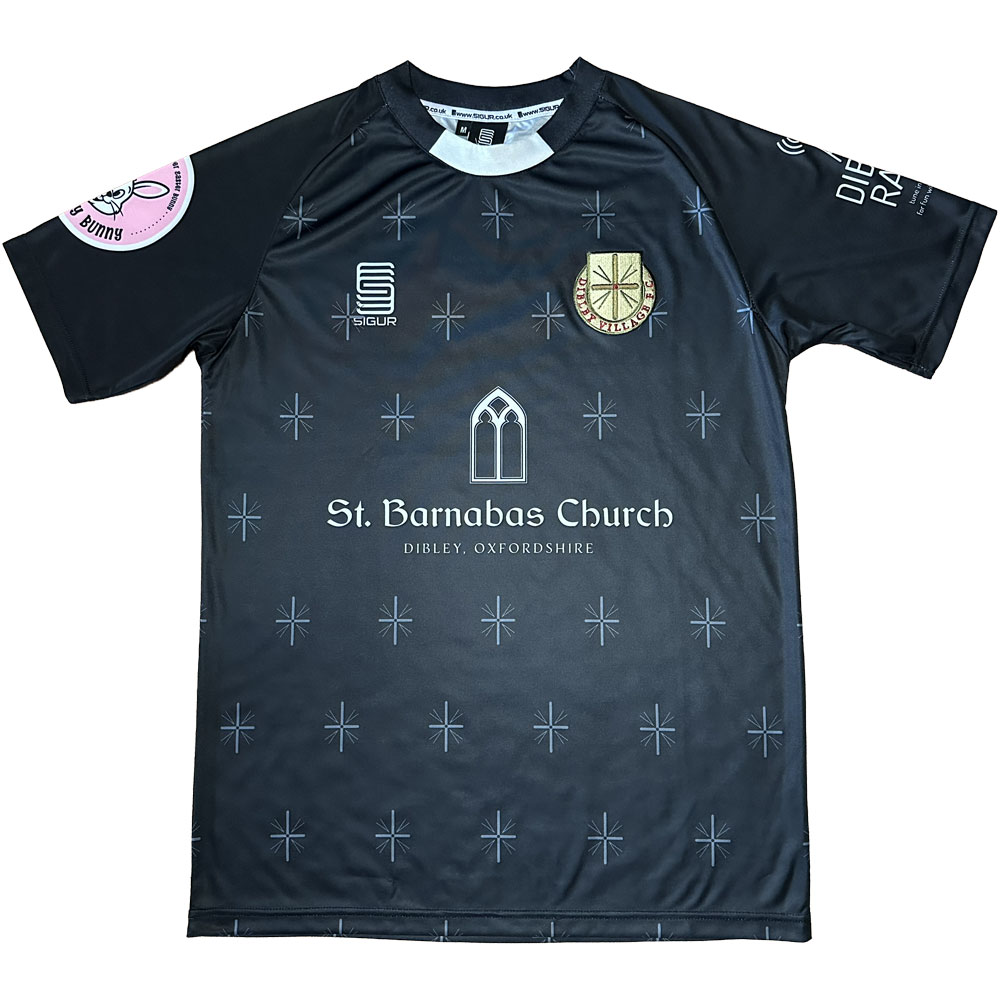 Our Dibley Village F.C. football shirt pays homage to one of the greatest British sitcoms, The Vicar of Dibley. The kit is modelled after the traditional vicar's garb, with a little flair. Our embroidered badge takes its inspiration from the banner that hangs on the pulpit of St. Barnabas Church.