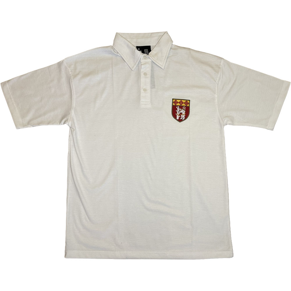 A high-cotton, retro-fit cricket shirt, featuring detailing inspired by the Warwickshire coat of arms: the famous bear and ragged staff, below three cross-crosslets.