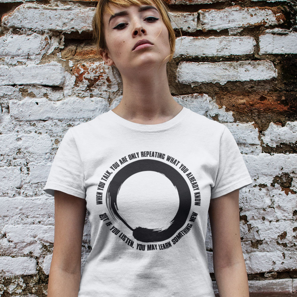 "When you talk, you are only repeating what you know; but if you listen, you may learn something new" - spoken by the Dalai Lama, and printed around an ensō.