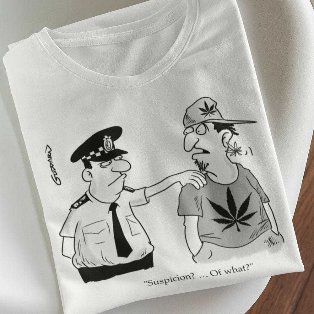 Arresting me on 'suspicion'? Suspicion? … Of what? A cartoon by renowned cartoonist Clive Goddard.
